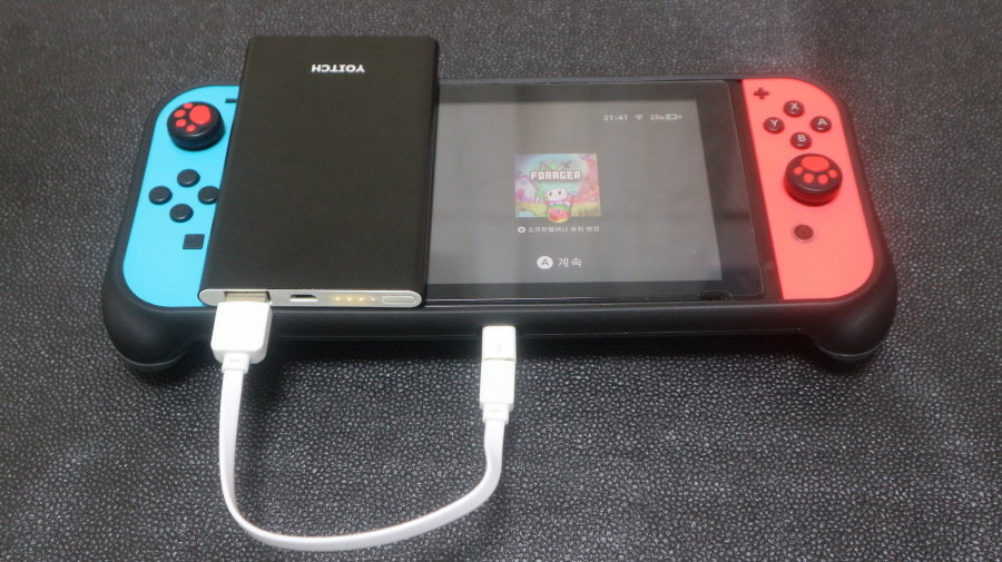808 볼트 보조배터리를 사용해서 닌텐도 스위치를 충전했습니다.
