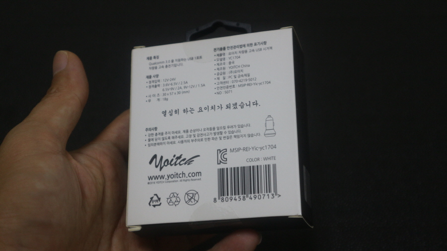 차량용 시거잭 충전기 박스 측면에는 정품 로고를 확인할 수 있습니다.
