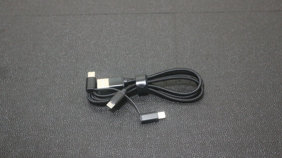케이블은 3in1으로 C 타입, 라이트닝 8핀, 마이크로 5핀 모두 충전이 가능합니다.