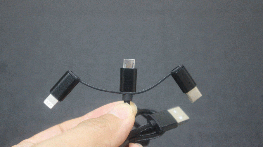 3in1 케이블로 C 타입, 마이크로 5핀, 라이트닝 8핀 충전이 가능합니다.