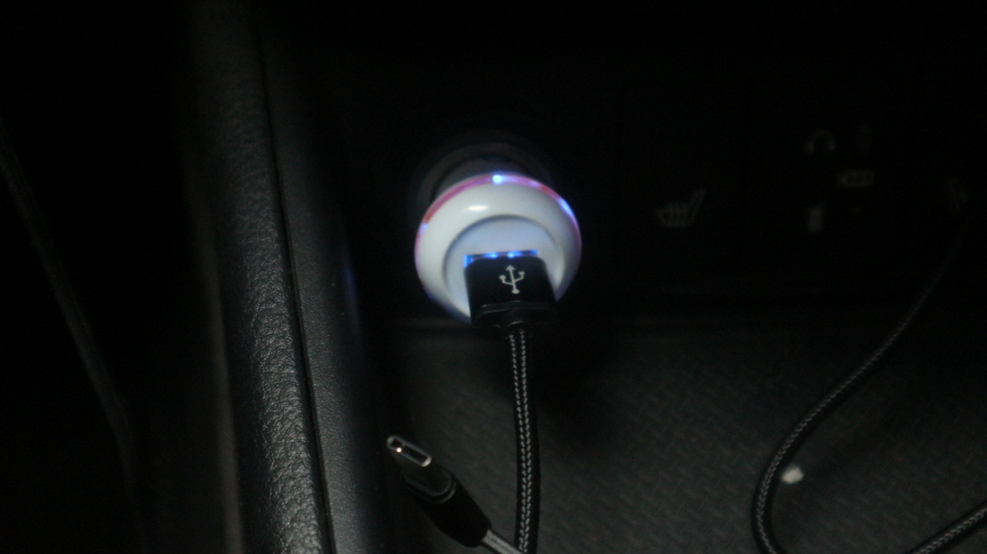충전 케이블을 차량용 시거잭 충전기에 연결했습니다.