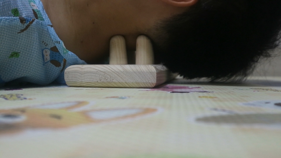 친환경 편백나무로 제작된 목뒤 근육 스트레칭을 할 수 있는