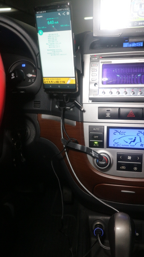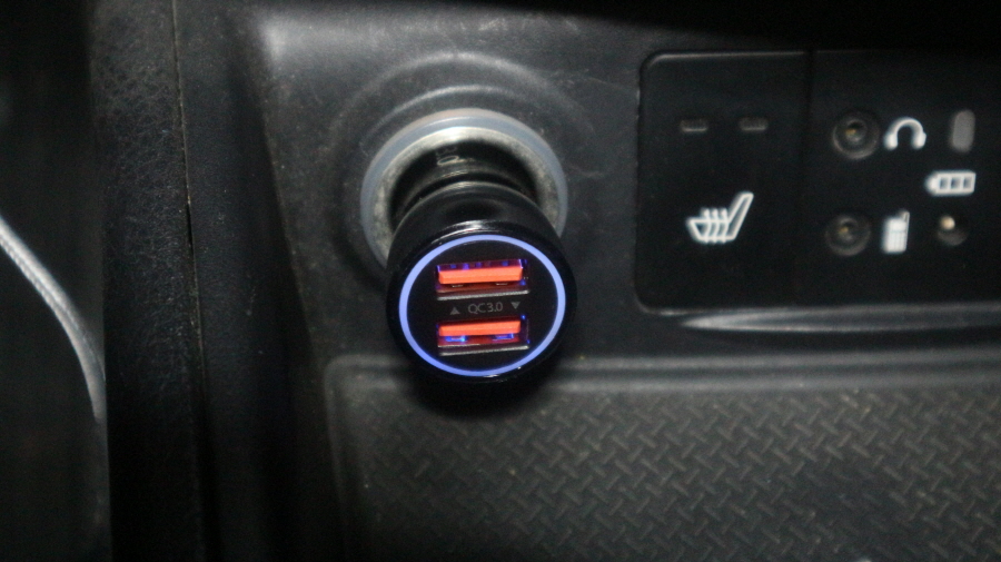 차량용 충전기를 시거잭에 연결했습니다.
