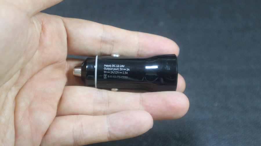 차량용 충전기 측면에는 제품 정보를 확인할 수 있습니다.