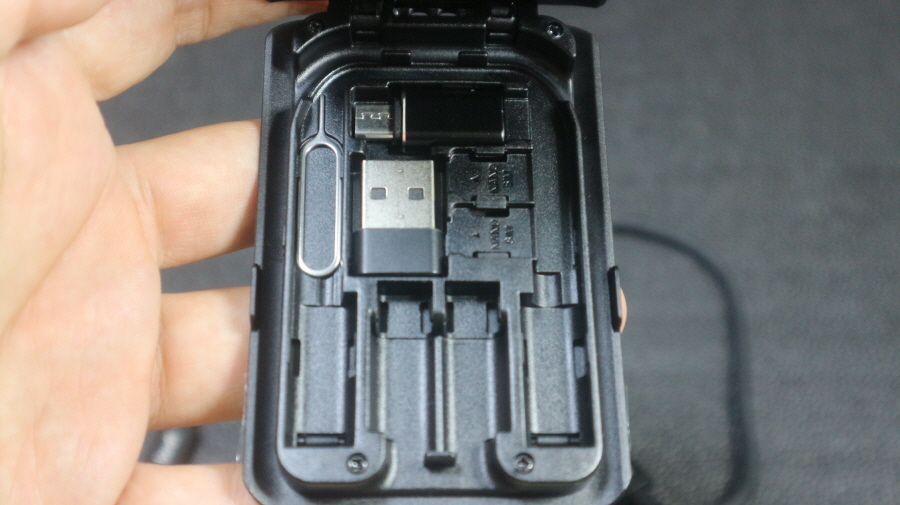 케이스 내부에 USB 및 마이크로 5핀 젠더를 보관할 수 있습니다.