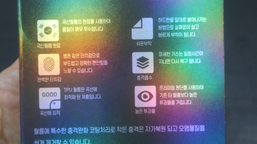 완벽한 터치감, 엣지곡면에 최적, 자가복원력은 기본, 모든 케이스에 호환가능