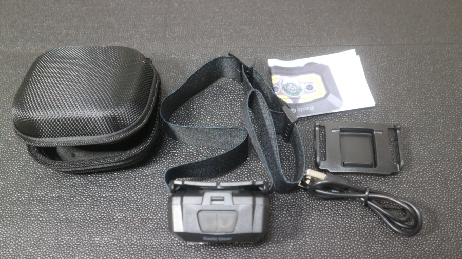 구성품은 헤드랜턴 본체, 헤드밴드, USB 케이블, 모자 어댑터, 설명서, 파우치로 되어 있습니다.