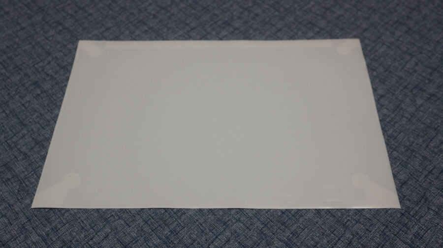 외부 보호 필름은 화이트 종이에 부착되어 있습니다.