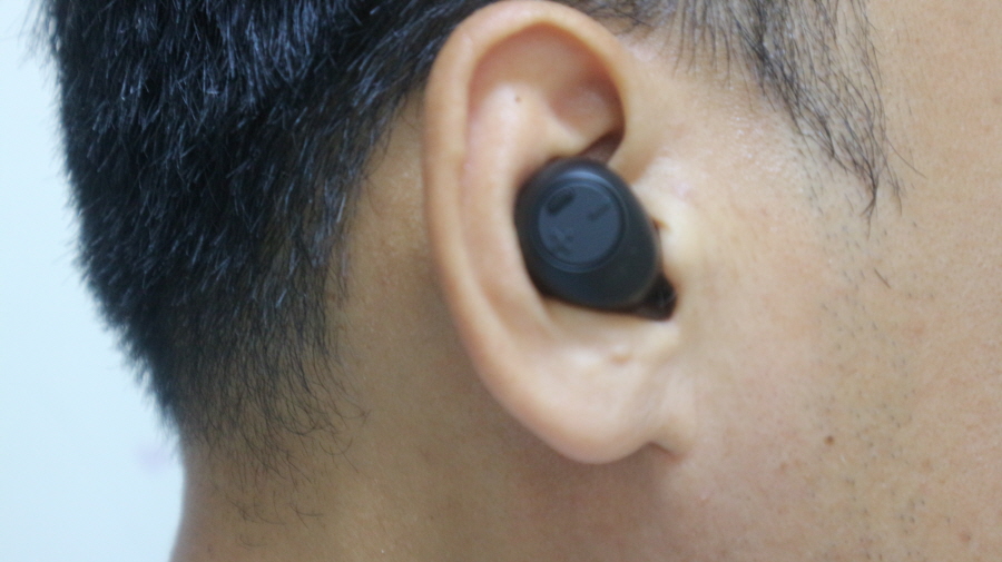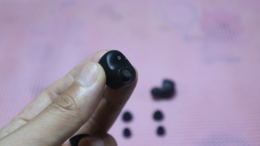 이어폰은 크기가 약간 큰 편이며 귀에 정확하게 밀착됩니다.