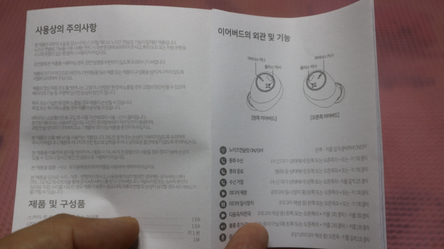 스카이 핏 ANC200 노이즈캔슬링 무선이어폰 페어링 방법은 처음 크래들에서 이어폰을 분리하면