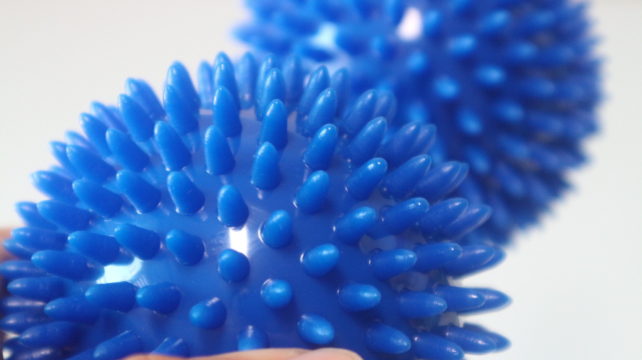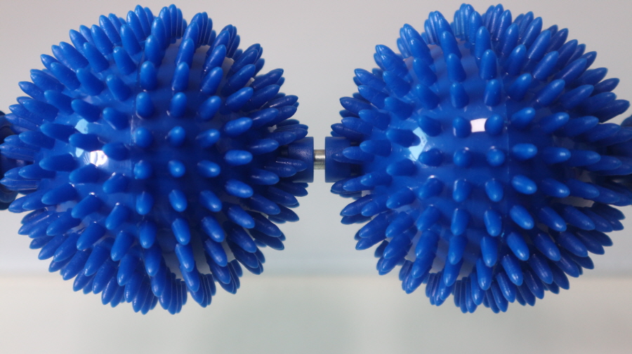양쪽 두 개의 손잡이와 중앙에 지압 돌기들이 뭉친 두 개의 볼로 되어 있습니다.
