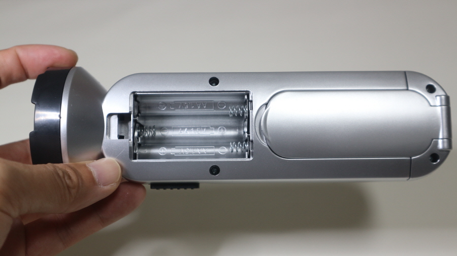 충전 형태가 아닌 건전지를 사용해서 어디서나 사용이 가능하고 가벼워서 휴대하기 편리합니다.