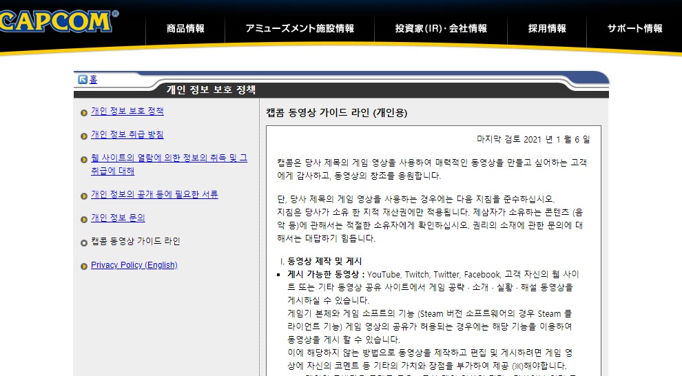 내용은 캡콤에서 새로운 게임 스트리밍 정책을 2021년 1월 6일 발표했습니다.