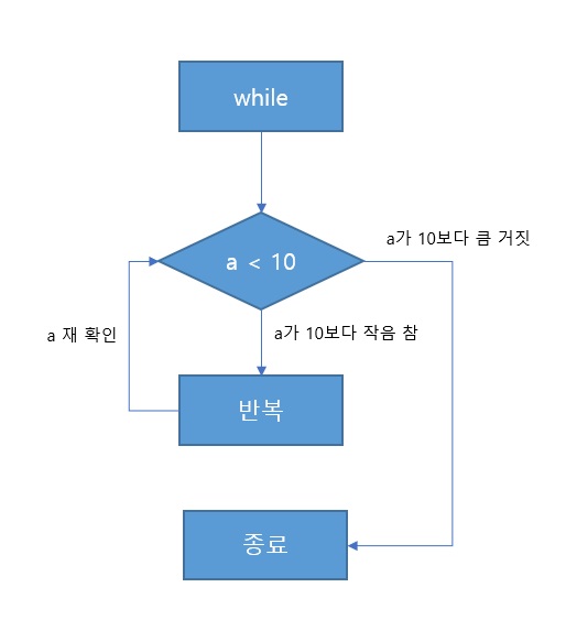 반복문은 참, 거짓을 구분하면서 거짓일 경우 루프를 빠져나가는 형태를 말합니다.