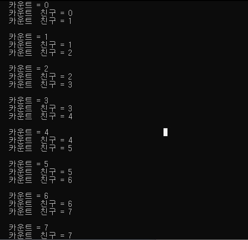 처음 카운트 코드를 while문으로 변경해보겠습니다.