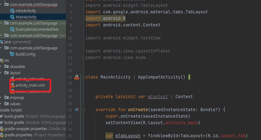 코틀린으로 안드로이드 개발 시 layout에 Activity_main.xml을 인식 못하는 오류가 발생했습니다.