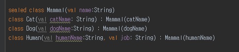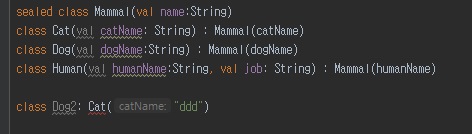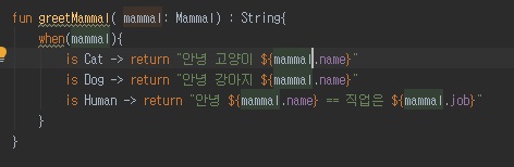 greetMammal 함수를 사용해서 선언한 클래스를 when 제어문을 사용해서 확인할 수 있습니다.