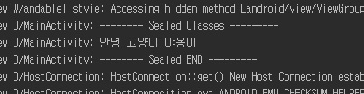 Logcat View에서 봉인 클래스(Sealed Class) 출력 정보를 확인할 수 있습니다.
