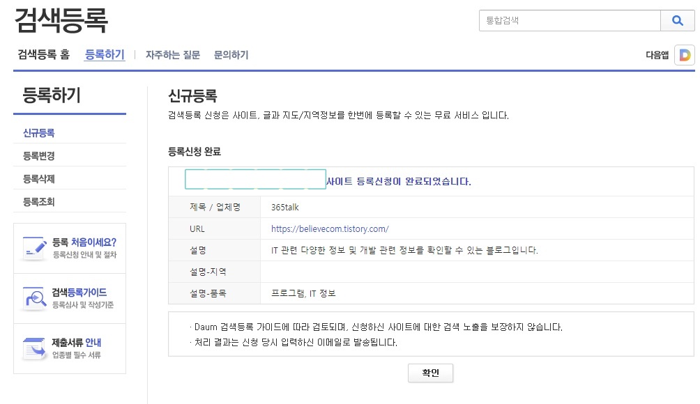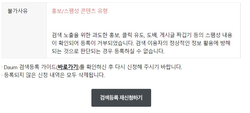 결론적으로 다음 검색 등록은 처음 사이트를 만들고 바로 등록하는 걸 추천드립니다.