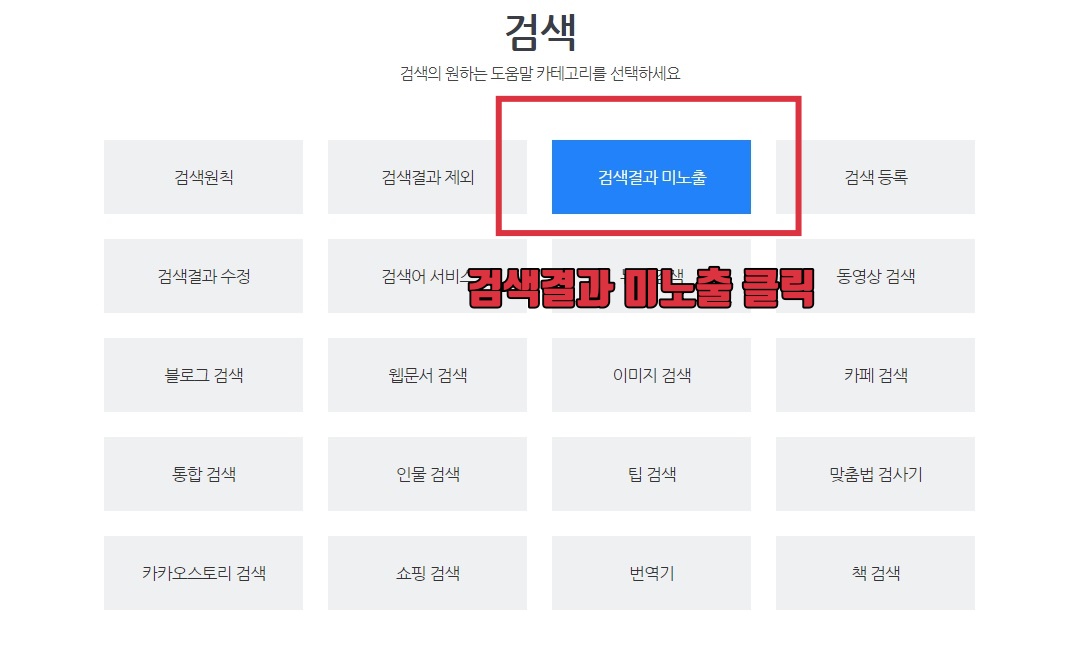 검색 결과 미노출 메뉴를 클릭해주세요.
