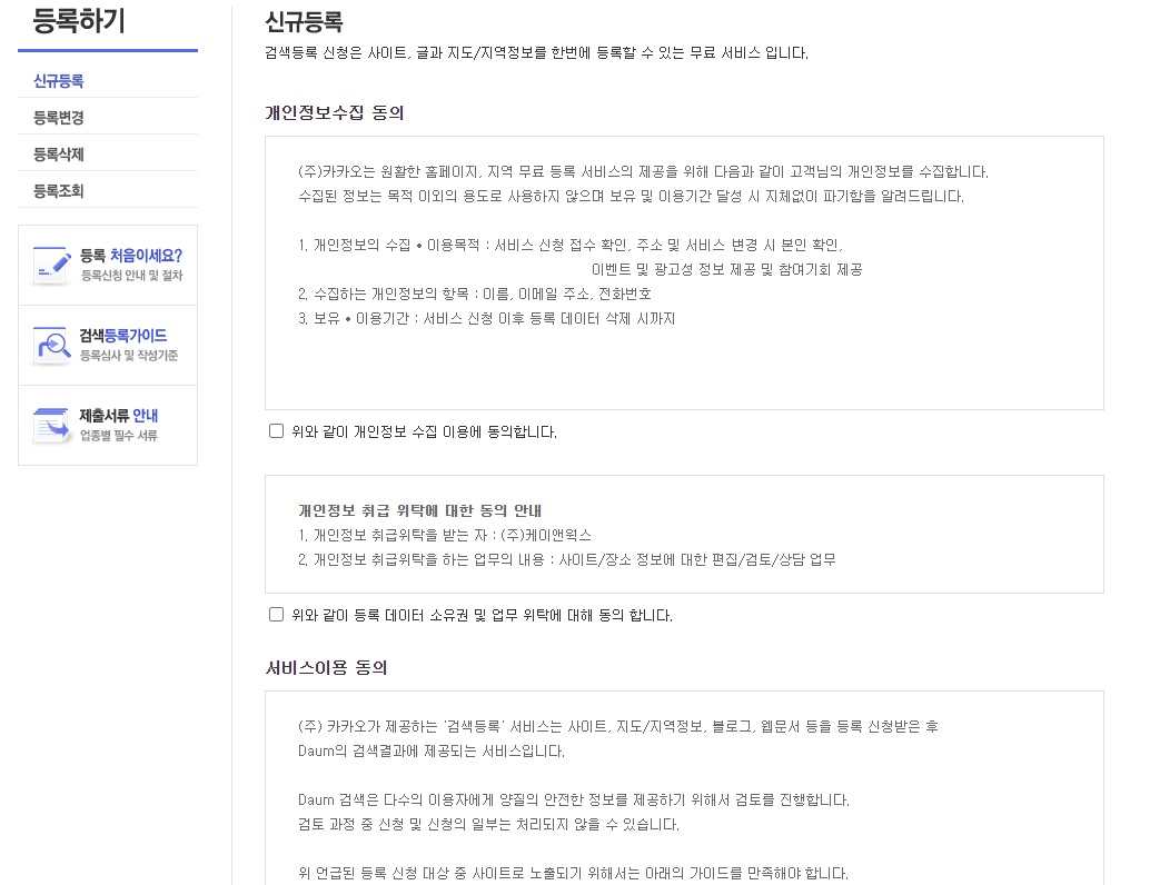 신규 등록에 따른 서비스 이용 동의 항목을 모두 체크해주세요.