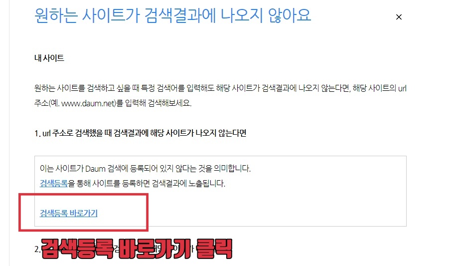 1번 아래쪽에 있는 "검색등록 바로가기"를 클릭해주세요.