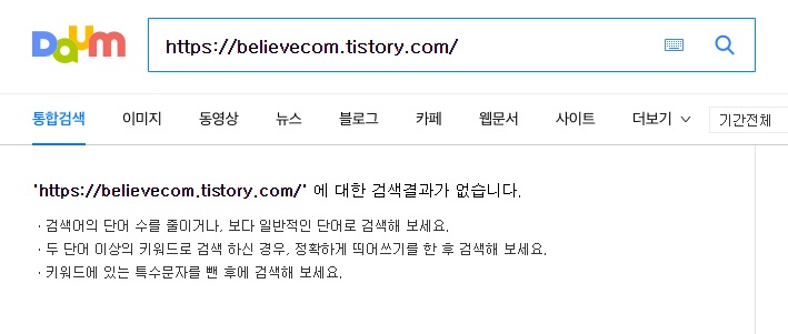 티스토리 최적화의 기본은 daum 검색에서 주소를 치면 알 수 있다고 했습니다.