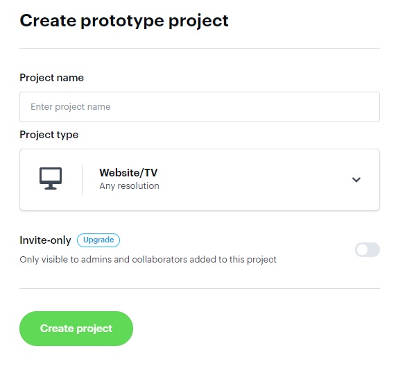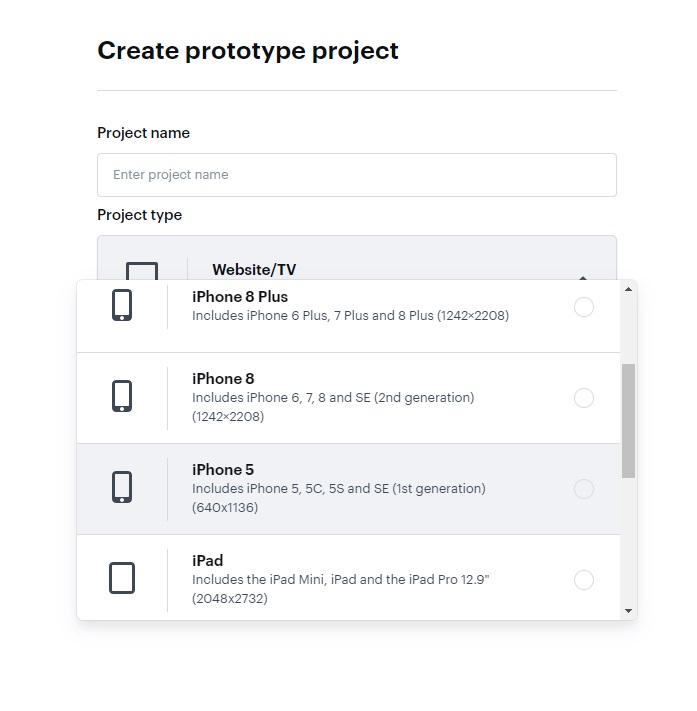 프로젝트를 생성하면 이름과 타입을 선택해야 합니다.