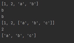 b배열 인덱스 0, 1은 정수 1,2이지만 3번째 인덱스는 문자열 배열입니다.