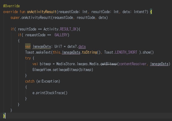 | [ Kotlin ] 코틀린 안드로이드 카메라 이벤트 이미지 뷰 연결하기 (0) | 2021.05.07 |