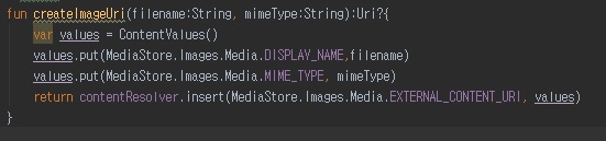 ContentValues를 사용해서 이미지 Uri를 생성합니다.