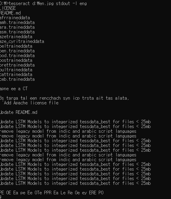 tesseract d:\keng.jpg stdout -l kor+eng > keng.txt