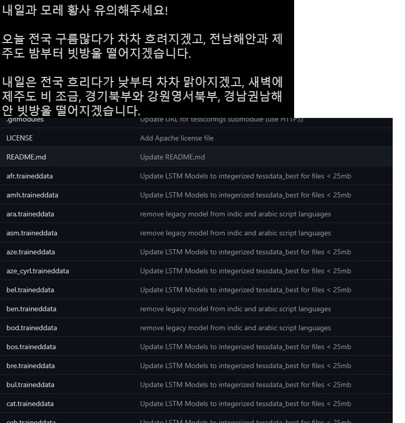 아래 사이트에서 테서랙트(Tesseract)다양한 언어 정보를 확인할 수 있습니다.