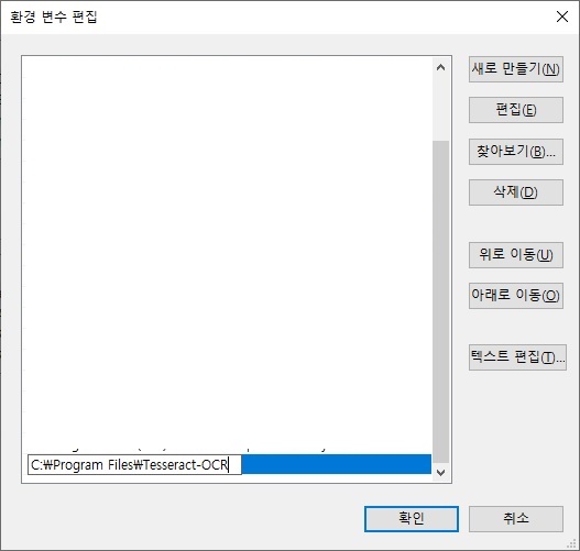 이제 테서랙트( Tesseract ) 명령어를 사용하기 위해서 시스템에서 환경 변수를 등록해주세요.