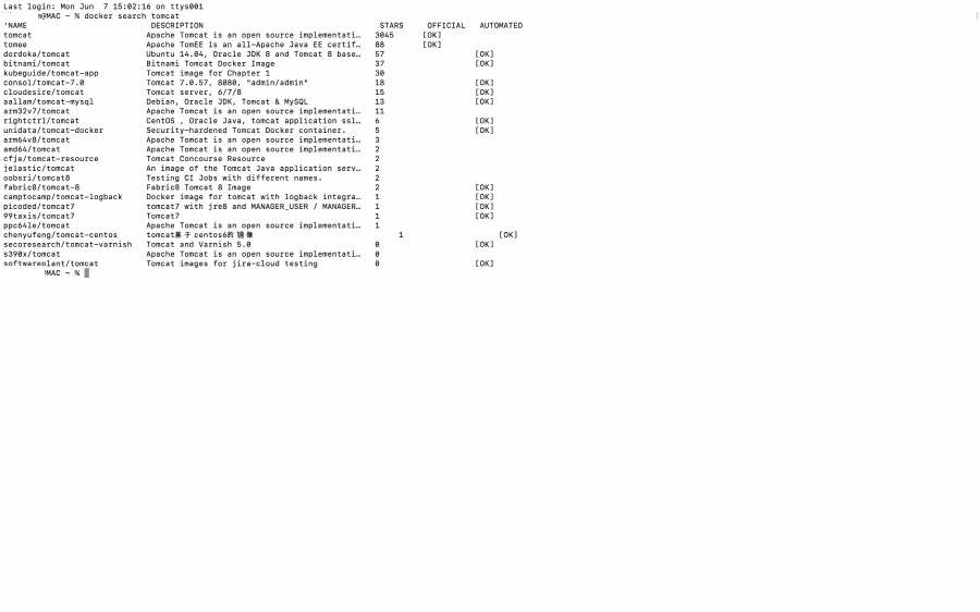 docker search tomcat