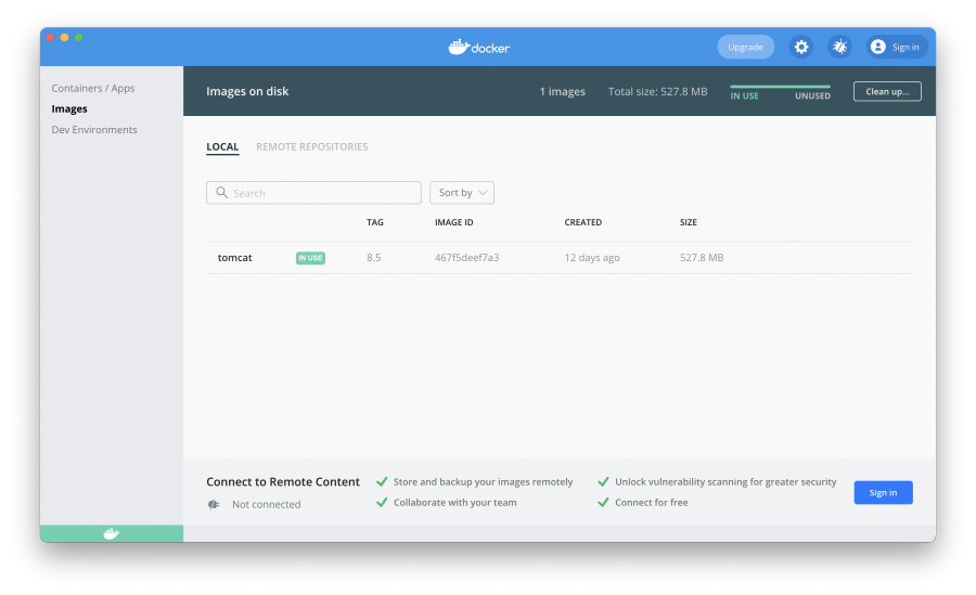 설치된 docker UI에서도 Images 항목을 바로 확인할 수 있습니다.