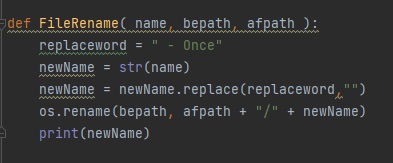 FileRename() 함수는 replaceword에 설정된 문자열을 변경하고 경로에 저장합니다.