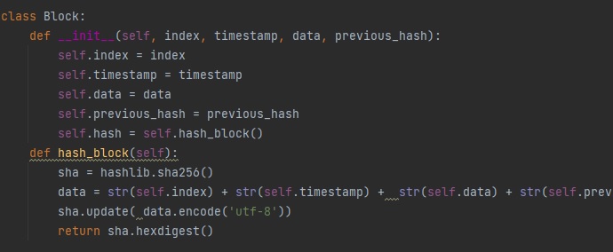 Block Class는 __init__ 함수를 사용해서 index, timestamp