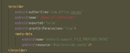 Manifest.xml 파일 하단에 provider 정보를