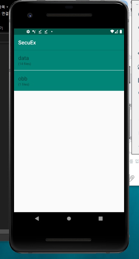파일 경우 launchFileIntent 함수를 사용해서 앱을 실행하고 뒤로 가기를 클릭하면 다시 폴더 리스트를 호출합니다.