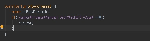 스택에 더 이상 확인할 내용이 없을 경우 종료할 수 있게 onBackPressed를 override 해줍니다.