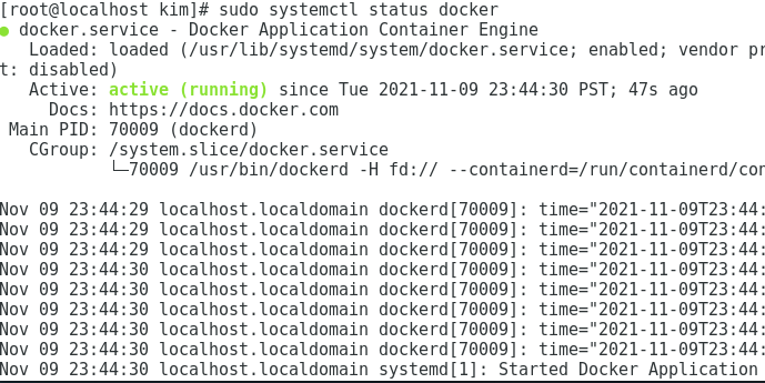 Active 항목에 "running" 상태를 확인할 수 있습니다.
