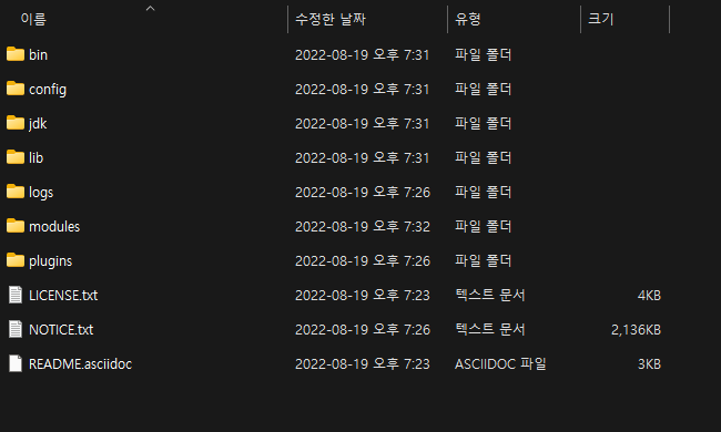 압축 해제 후 elasticsearch-8.4.0폴더 아래 bin폴더로 이동합니다.