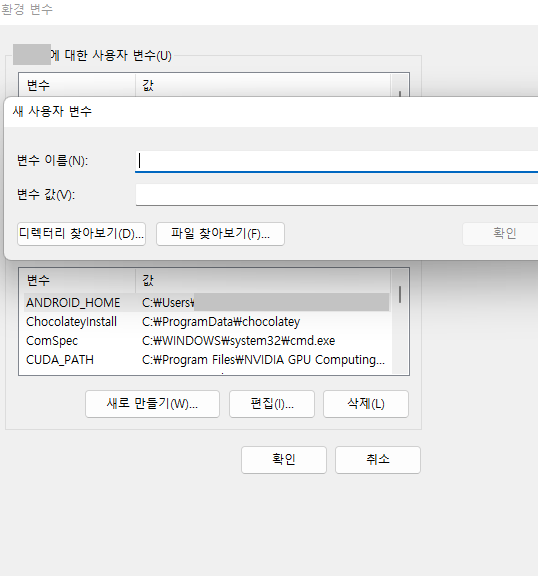 위에서 확인한 "시스템 속성" 화면이 출력되면 하단에 있는 "환경 변수" 버튼을 클릭해서 동일하게 등록하시면 됩니다. 환경 변수 등록은 Windows를 사용하면서 정말 많이 사용하는 기능입니다. 다양한 프로그램 경로를 설정해서 자동으로 동작하게 하는 것이 주목적이지만, 자주 사용하는 경로 및 정보를 포함할 수 있어 잘 사용하면 정말 좋은 기능입니다.