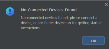 플러터(Flutter) 실행 시 'No Connected Device Found' 문제가 발생했습니다.