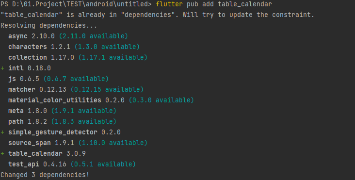 Flutter pub add table_calendar