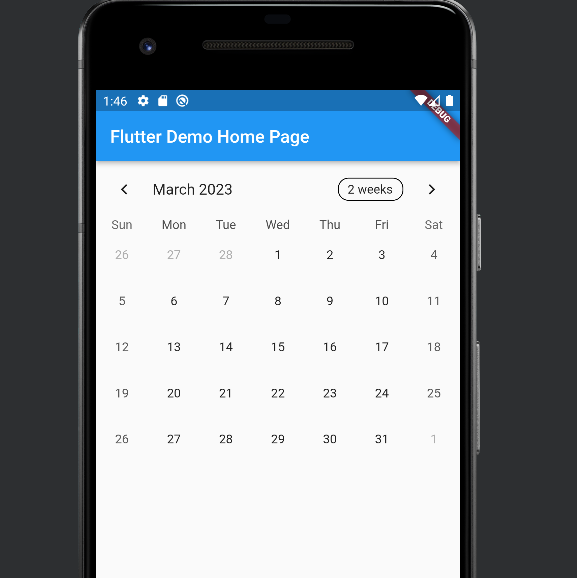 정상적으로 컴파일되면 Android화면에서 TableCalendar UI를 확인할 수 있습니다. 감사합니다.