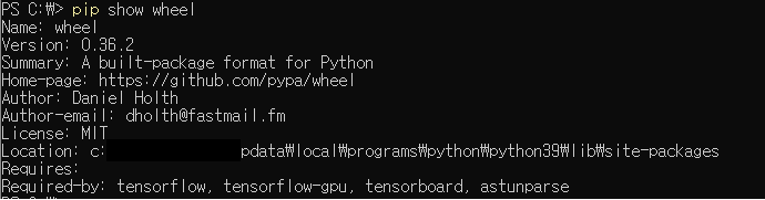 예제) pip show wheel