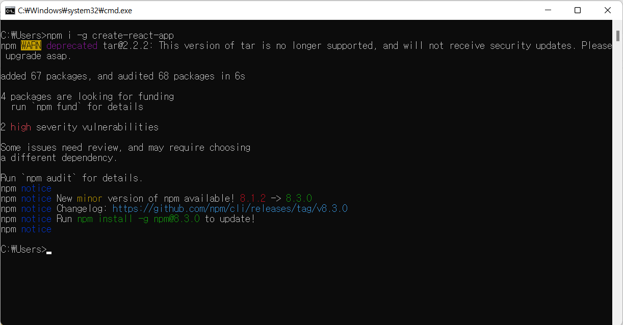 | React You are running `create-react-app` 5.0.0, which is behind the latest release (5.0.1) error (0) | 2022.04.15 |