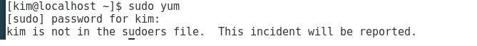 sudo yum 명령어를 실행하면 사용자 이름으로 사용할 수 없다고 합니다.